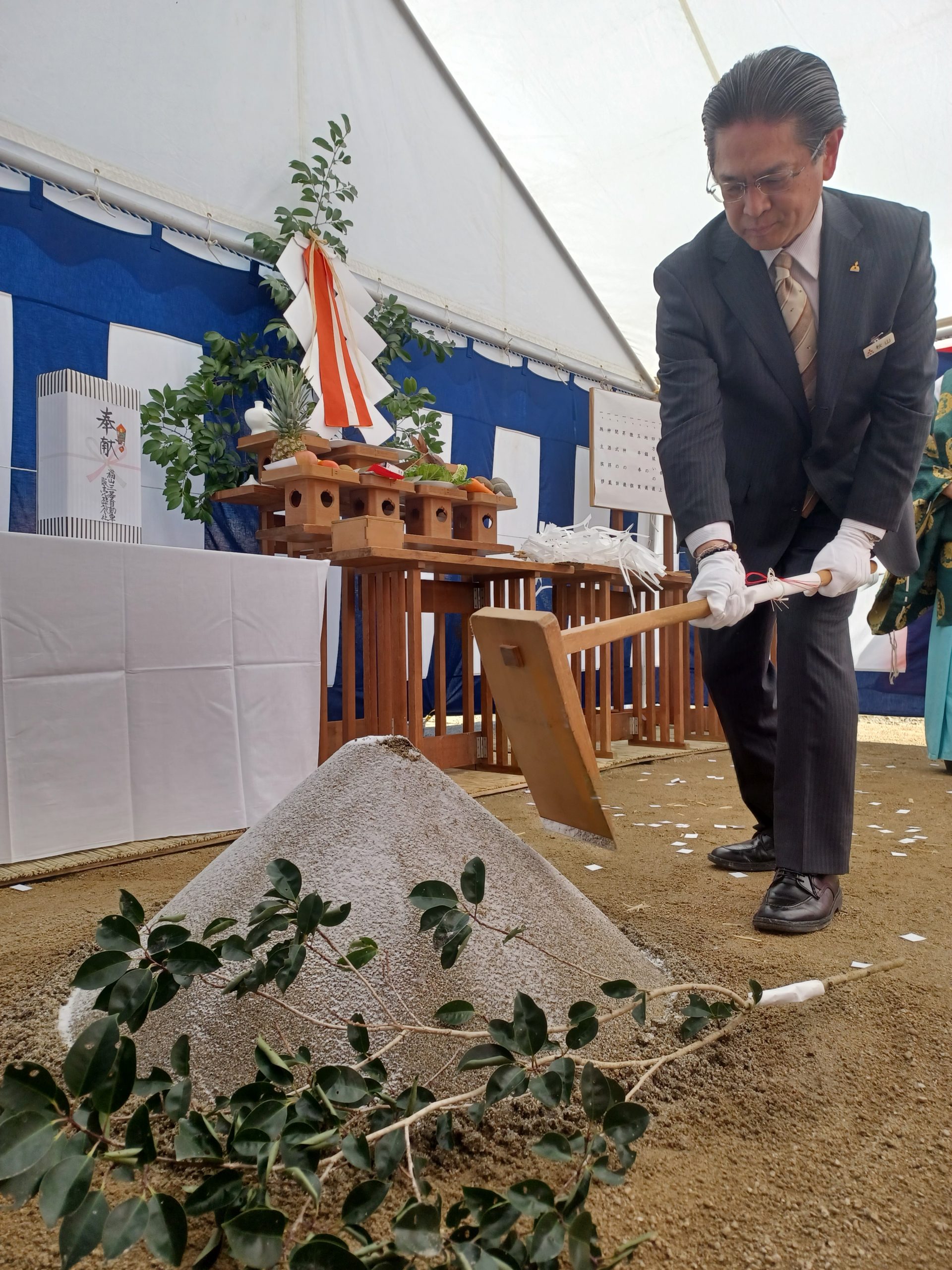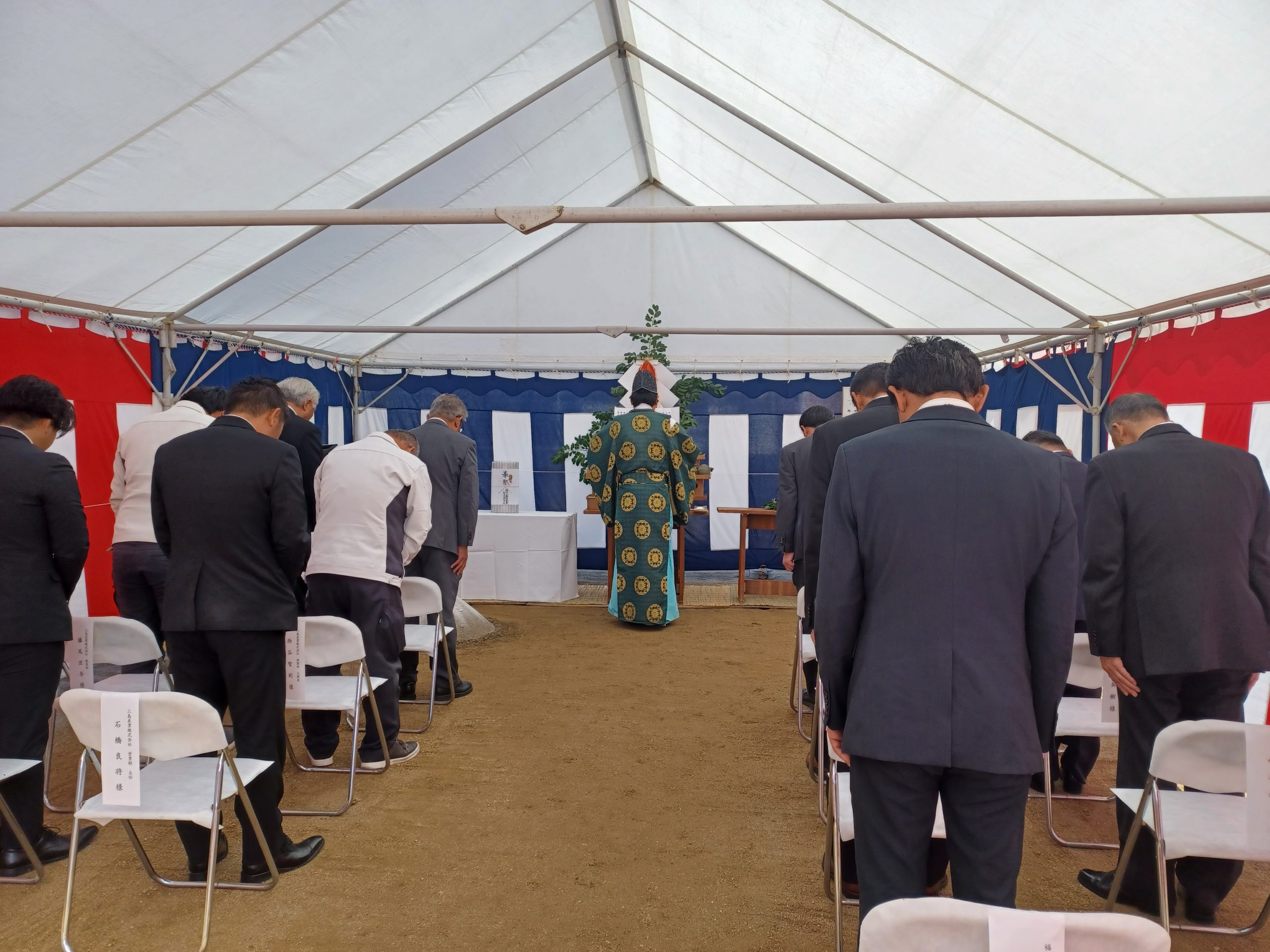 当社役員ならびに施工会社の皆様が参列し、工事の安全と新店舗の繁栄を祈願いたしました。